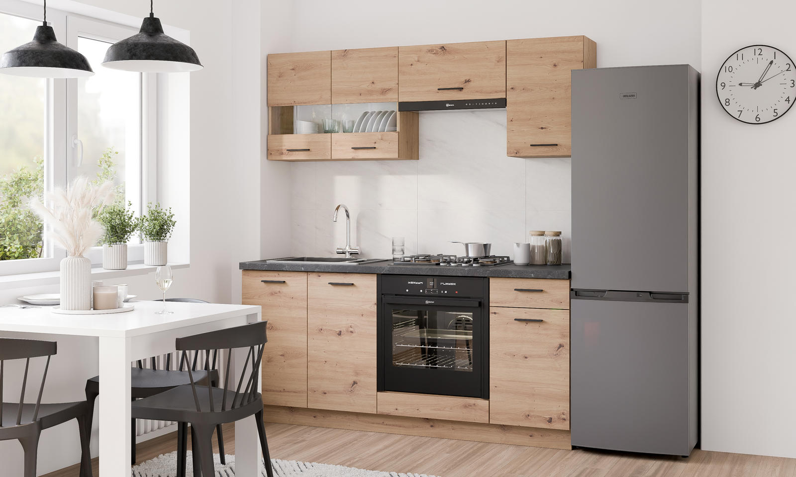 Pakabinama spintelė Pati PK02 yra Pati virtuvės kolekcijos dalis – derinama su kitais moduliais, tokiais kaip kampinės, apatinės spintelės ar didesni blokai buitinei technikai.
