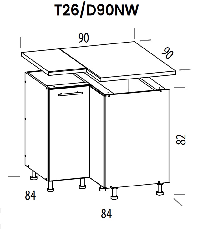 Pastatoma kampinė spintelė Tiffany T26/D90NW