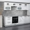 Spintelių stalviršiai atskiri, nėra stalviršio ant kriauklinės spintelės.