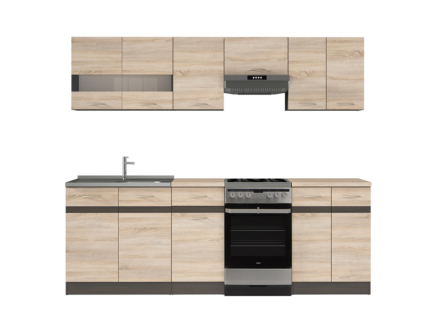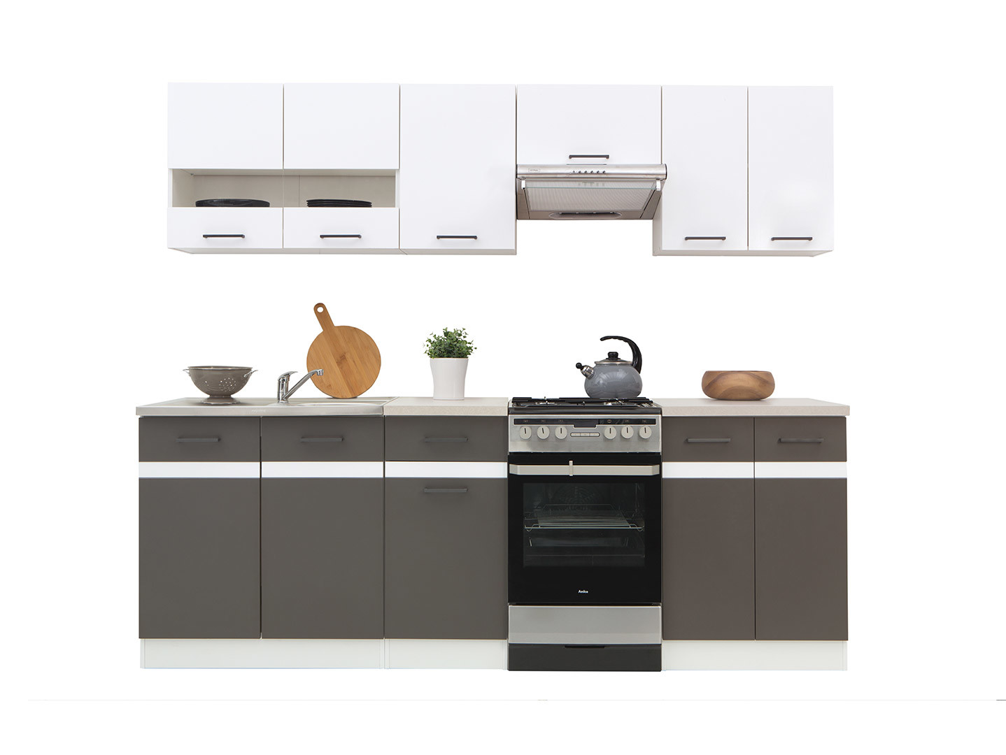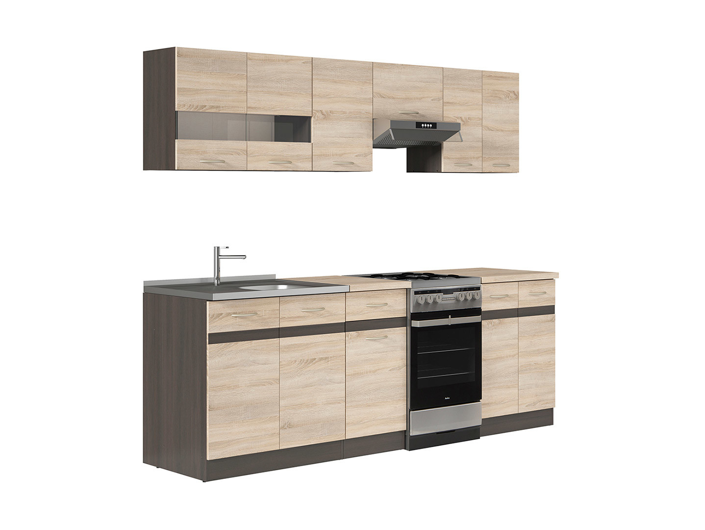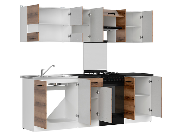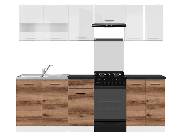 Junona Line – modernus 230 cm pločio virtuvės komplektas, sukurtas patogiam ir stilingam maisto gaminimui mažesnėse virtuvėse.