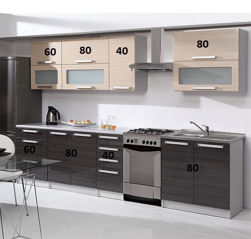 Apatinių spintelių aukštis 820 mm; gylis 440 mm;