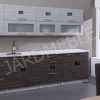 „Posnania“ virtuvės komplektas su MDF fasadais tamsios zebrano spalvos suteikia modernų ir stilingą sprendimą jūsų virtuvei, papildytas švelnaus uždarymo mechanizmais komfortui.