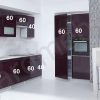 Apatinių spintelių aukštis 820 mm; gylis 440 mm; Pastatomų didžiųjų spintų aukštis 2130 mm, gylis 550 mm;